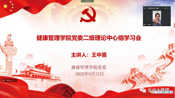 2022年5月17日上午,永利集团yl6809官网党委在腾讯会议上召开线上二级理论中心组学习会,专题学习“习近平在庆祝中国共产主义青年团成立100周年大会上的讲话”精神,会议由学院党委书记王中喜主持,中心组成员进行了集中学习。