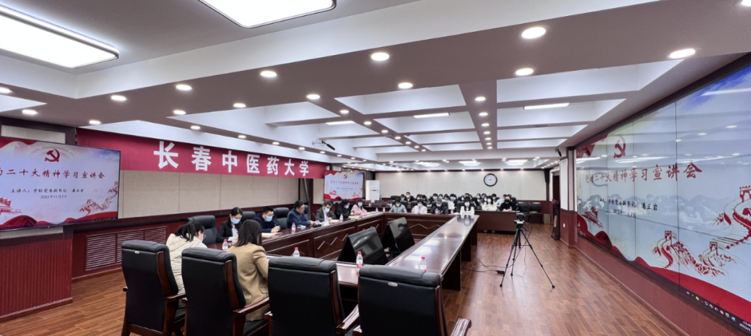 11月7日,在明德楼221会议室,学校党委副书记江潘正岩为永利集团yl6809官网师生做党的二十大精神宣讲。