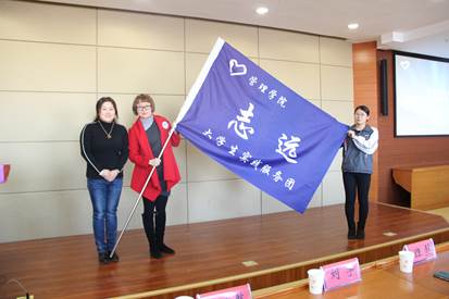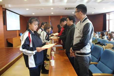 为更好地加强社会实践与志愿服务活动的育人功能,带领更多的青年志愿者参与其中,永利集团yl6809官网成立“志远”大学生实践服务团,由市场营销教研室徐旭老师担任指导教师;为实现学生在专业研究领域有突破、在就业创业领域有发展的成绩双丰收,学院成立“卓识”创新项目研究团和“兴学”创业项目研究团,分别由市场营销教研室夏昉老师和班然老师担任指导教师。党委副书记兼副院长郝梓旭向学生志愿者提出了新的要求,为指导教师颁发了聘书,为“志远”大学生实践服务团授旗。公共事业管理专业2015级学生聂荟芸代表全体学生发言,6名大学生志愿者获得“优秀大学生志愿者”荣誉称号。