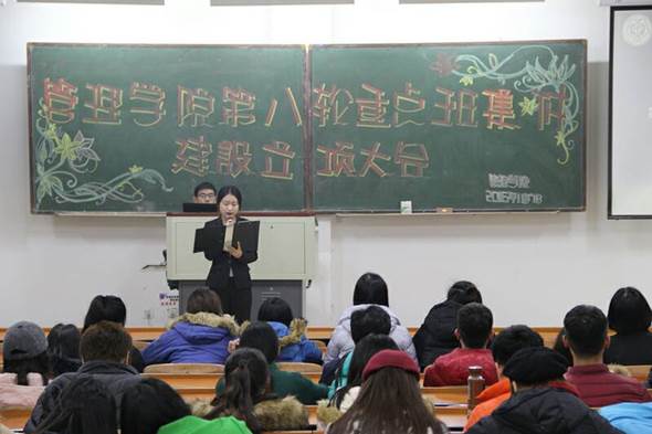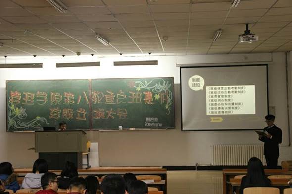 学院2014级、2015级的12个班级申请立项并参加了本次立项大会。各班将班级的班级简介,建设目标,建设思路,以及具体的建设方案通过ppt进行汇报展示。