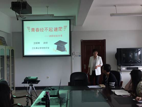 本期活动分为教师学术分享和学生专题汇报两个部分。卫生事业管理教研室教师王昕晔结合自身学习和工作经历,做了主题为“青春不迷茫——读研经验分享”的讲座。讲座围绕“四个要”,即“要分解目标、要导师沟通、要用心科研、要开阔视野”四部分展开,引导学生们思考如何充实的度过研究生生活,并鼓励大家付诸实践。经济管理教研室教师刘晓静以“美丽学术——可爱的科学研究”为主题,从同学们科研中常遇到的问题入手,将如何选题、如何获取数据、数据的处理与应用、研究的创新点等问题细致讲解,解除学生的科研困惑。