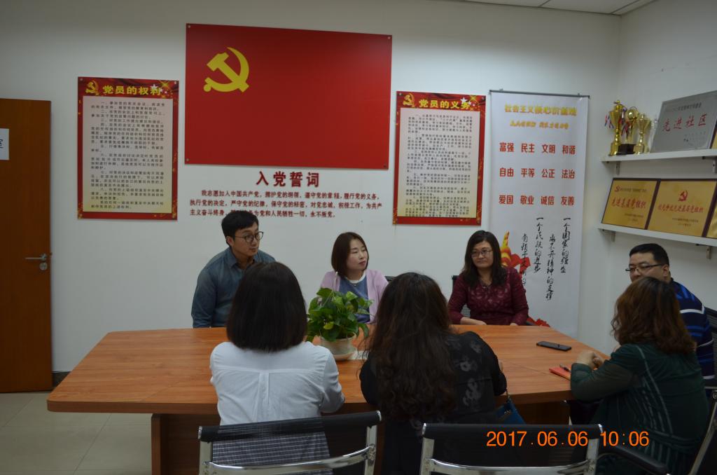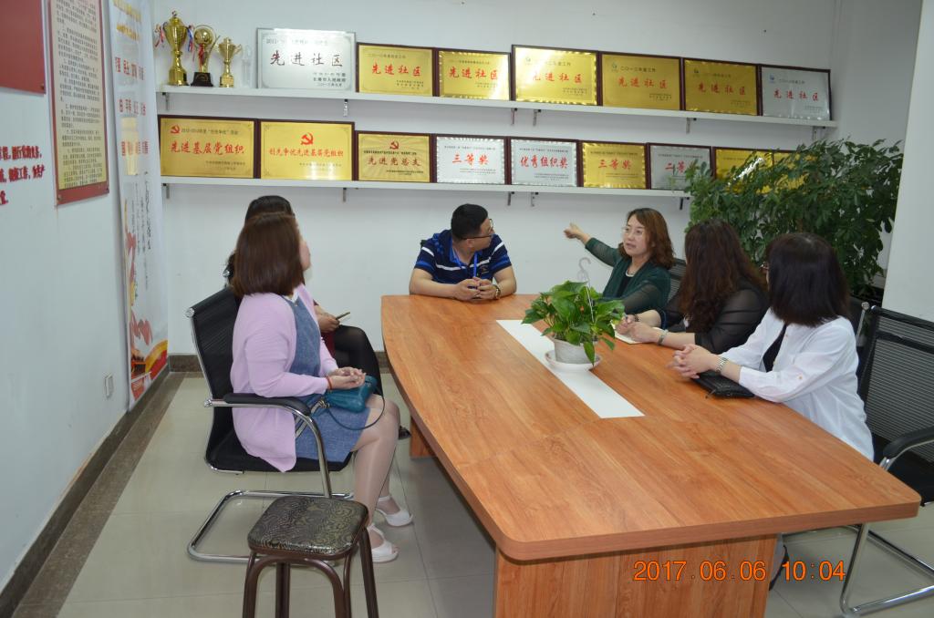 永利集团yl6809官网党委推进“三服务,三提升”工程,2017年6月6日,永利集团yl6809官网党委书记徐晓红、副院长刘淼、党委副书记兼副院长郝梓旭、办公室主任孙立、团委书记刘宇、政治辅导员于阳和部分学生干部赴净月区彩宇社区开展调研。