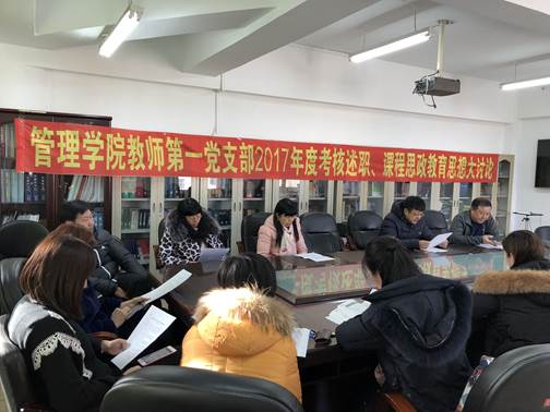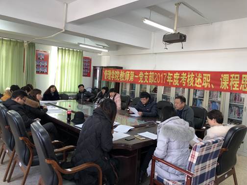 首先,进行2017年度教职工考核述职。第一党支部的教师们逐一对一年来的教学、科研等各项工作进行总结,并确立今后的工作目标。述职后全体教师进行了民主测评。