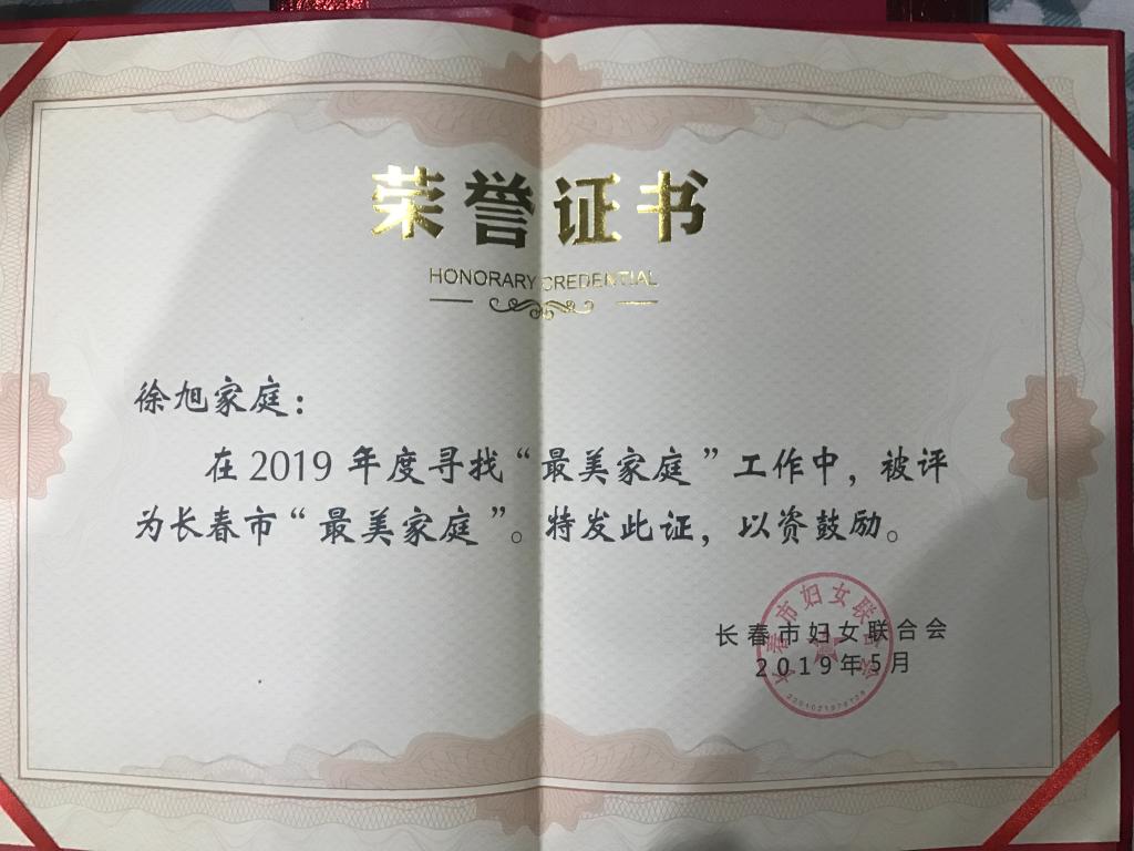 在5.15国际家庭日来临之际,由长春市妇联开展的寻找2019年度长春市“最美家庭”结果揭晓,永利集团yl6809官网徐旭家庭被评为2019年度长春市“最美家庭”。