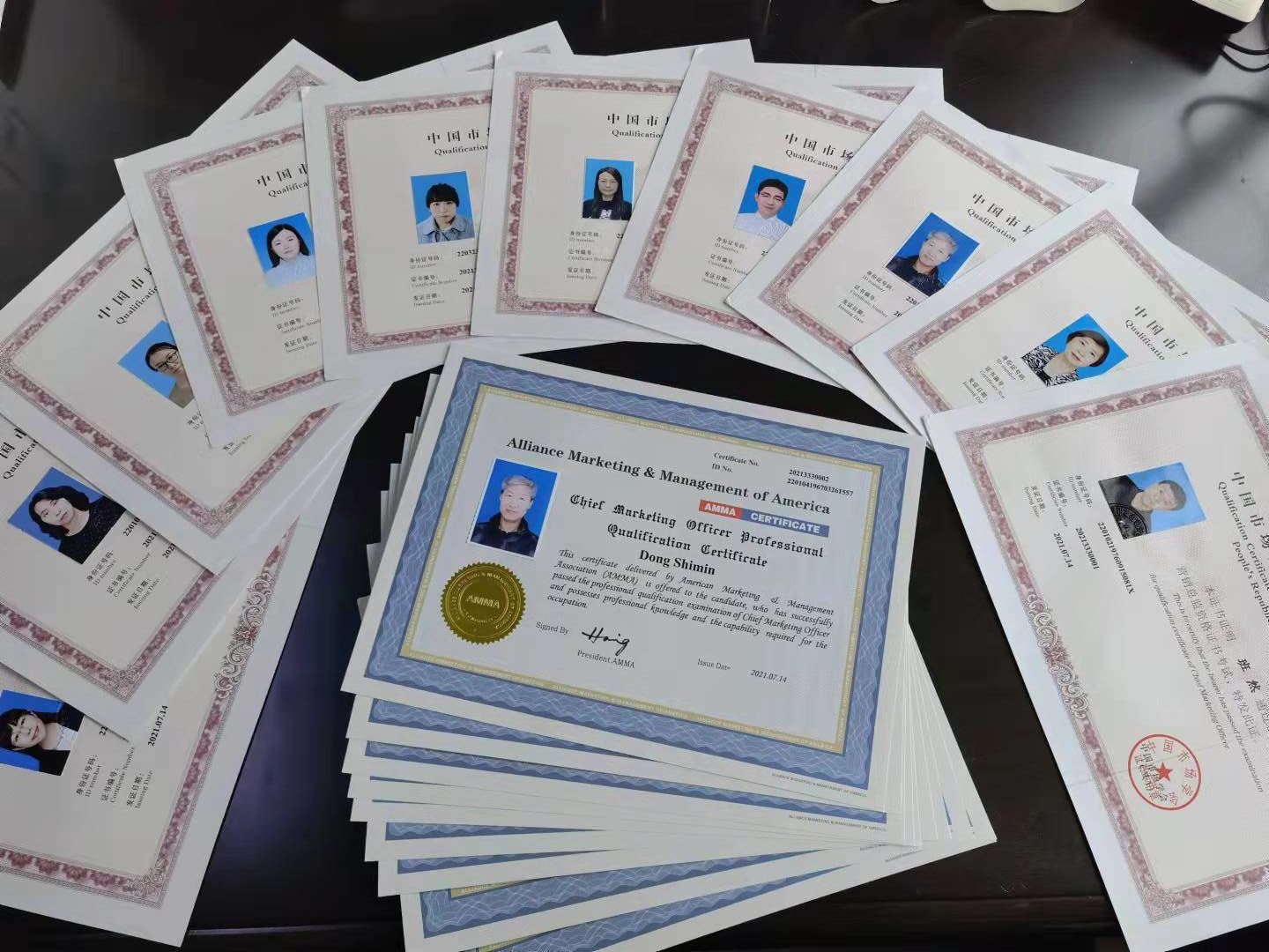 3.中国市场营销总监高级资格:学院班然、张硕、石金秋、王贺、夏昉、徐旭、董世民、赵树梅、郝颜、王赫等10名教师获得中国市场营销总监高级资格证书,同时获得了由美国市场管理协会(AMMA)颁发的国际市场营销总监资格证书。