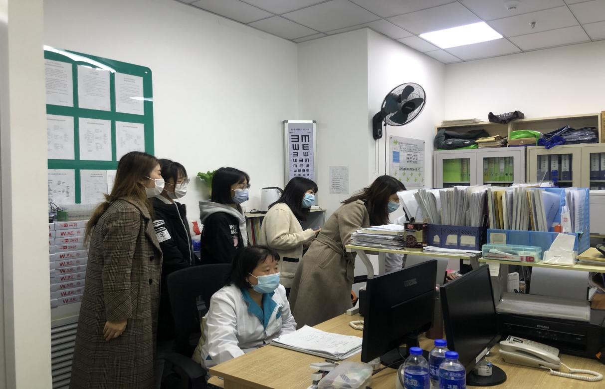 随后与卫生健康综合科于珊珊老师一同前往虹桥医院,查看学生实习实践情况及过期麻醉药品销毁等具体工作,并深入到昆山社区,了解同学们的实践学习内容,温院长还为学生细心讲解了社区居民健康档案的组成部分和录入档案的注意事项。