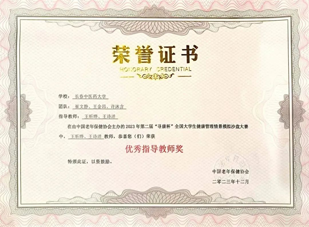 12月8日至10日,第二届“寻康杯”全国大学生健康管理情景模拟沙盘大赛在上海健康医学院举办,来自全国71所院校的72支队伍参赛。我院健康服务与管理教研室教师王昕晔、王诗洋作为指导教师,带领由健康服务与管理专业2021级学生崔文静、王金昂、2022级学生许沐含组成的“心扬Health队”代表学校参加比赛,经过社区健康管理情景模拟、现场小组赛及决赛三个阶段的比拼,最终荣获总决赛二等奖的好成绩,王昕晔、王诗洋同时被评为优秀指导教师。