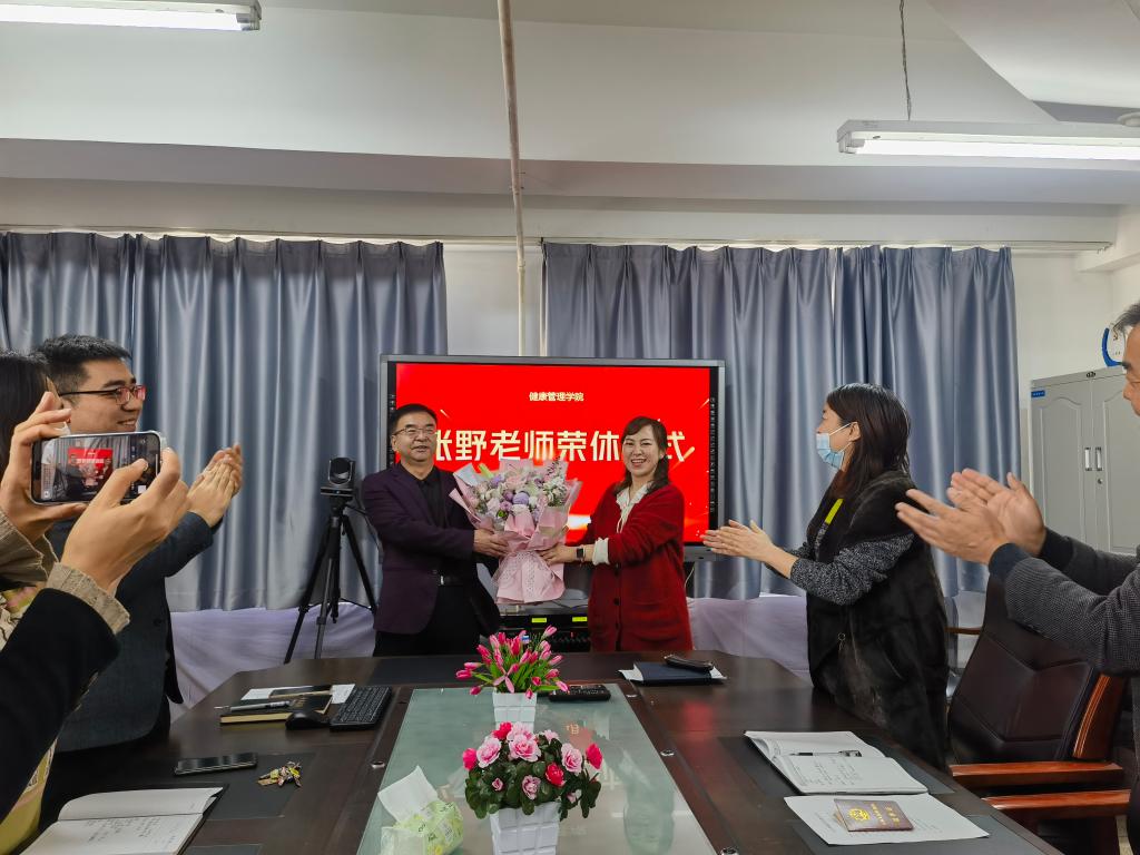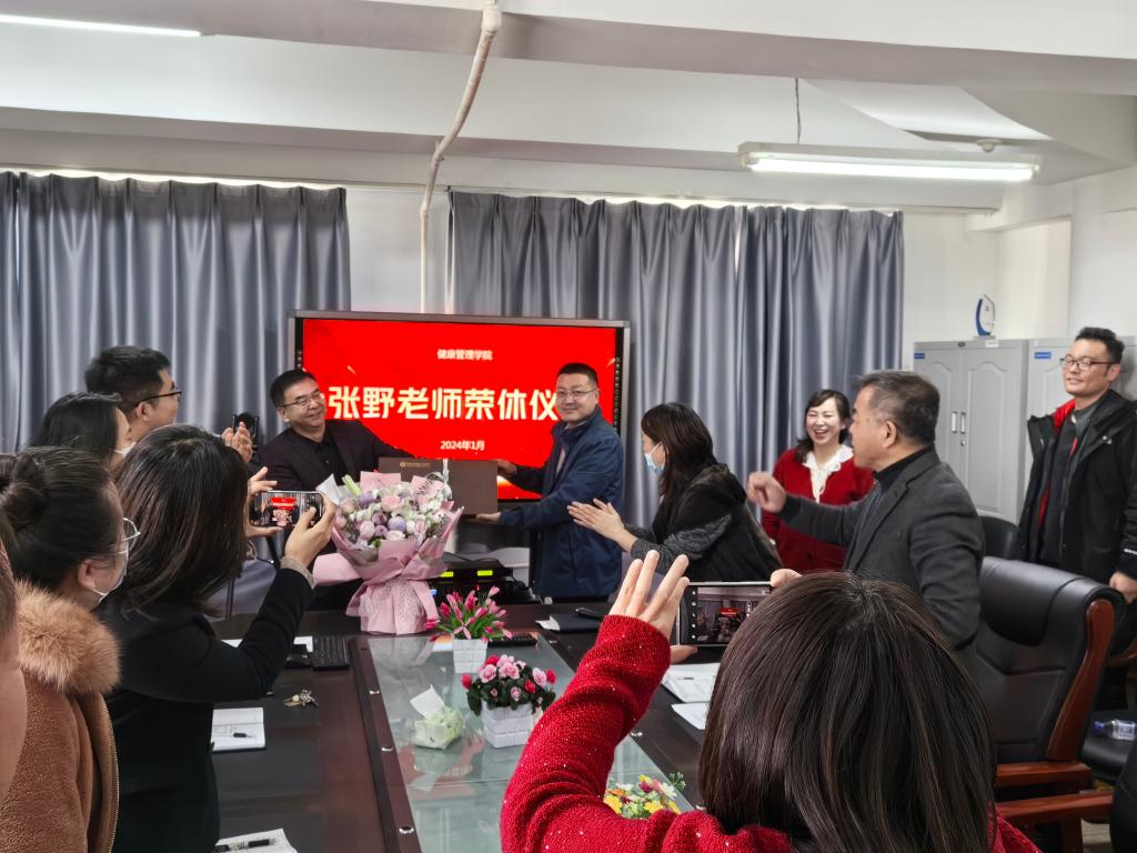 教职工大会后,举行了张野老师的荣休仪式。张野老师将于2024年2月光荣退休,在教学岗位34年,立德树人,兢兢业业、不断精进教学能力水平,为人正直,甘于奉献。王中喜书记对其在教学岗位的奉献精神给予了肯定。张野老师发表了“感谢、感恩、感动、美好回忆”的退休感言,教师代表张文斌、谢铮对张野老师表达了美好祝愿。