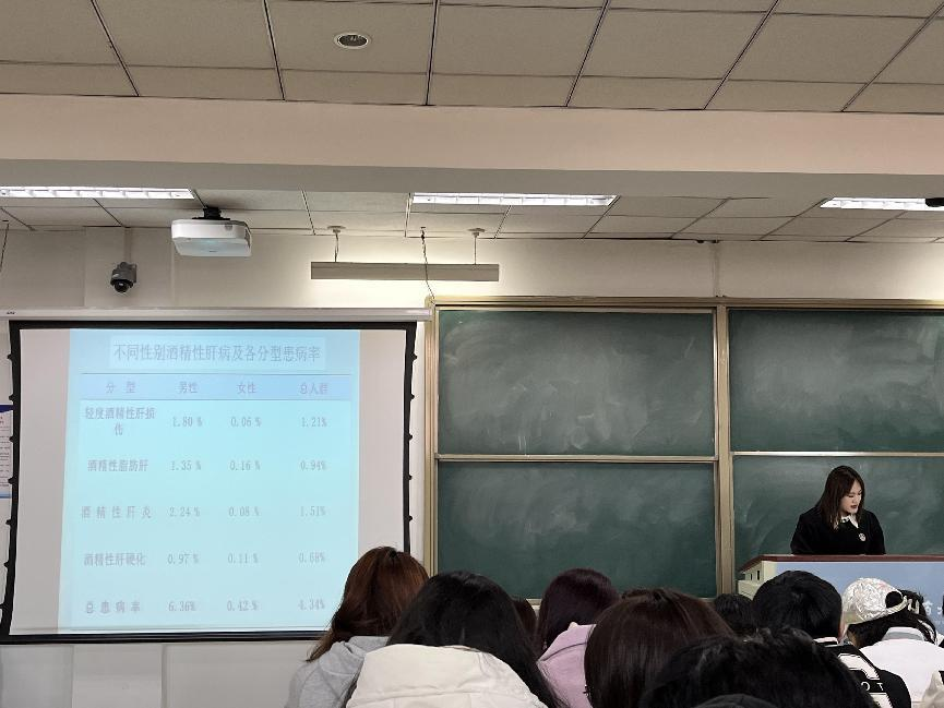 2022级公共卫生专业硕士研究生王博奇同学以《酒精性肝病的危险因素及防治》为主题汇报,主要讲解酒精性肝病的概念及流行病学特征、该病的危险因素、临床症状和治疗方式,并简要说明酒精性肝病的预防保健措施。当前人民生活水平正大幅提升,我国居民饮酒比例也越来越高,通过对酒精肝这一疾病的学术交流,使同学们更加清楚地意识到因日常生活不良习惯引起的永久性身体损伤,进而减少过度饮酒带来的危害。