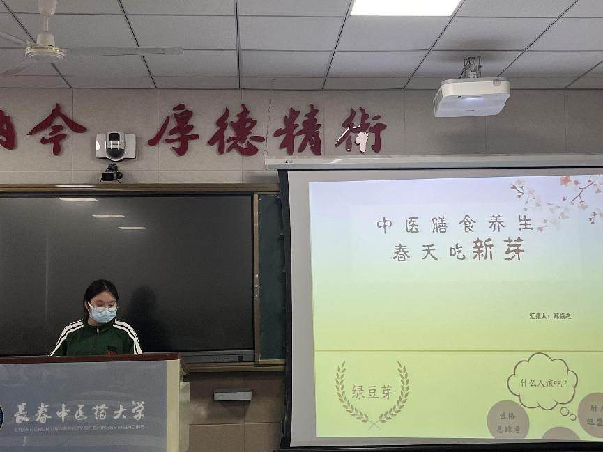 2022级公共卫生专业硕士研究生郑焱之同学以《中医膳食养生——春天吃新芽》为主题汇报,从中医角度阐述绿豆芽、豌豆苗、蒜苗、芦笋、荠菜、香椿等几种“新芽”的食用功效、适宜人群和膳食养生烹饪做法。春天是生发的季节,气温回暖,万物开始萌发新芽,中医认为,春季应顺应自然,多吃嫩芽绿叶的食物,以鼓励身体的生发之气,通过对该内容的分享,使同学们了解到新芽类食物不仅肥硕鲜嫩、口感极佳,而且富含丰富的营养成分,有助于促进阳气升发,调节身体机能。