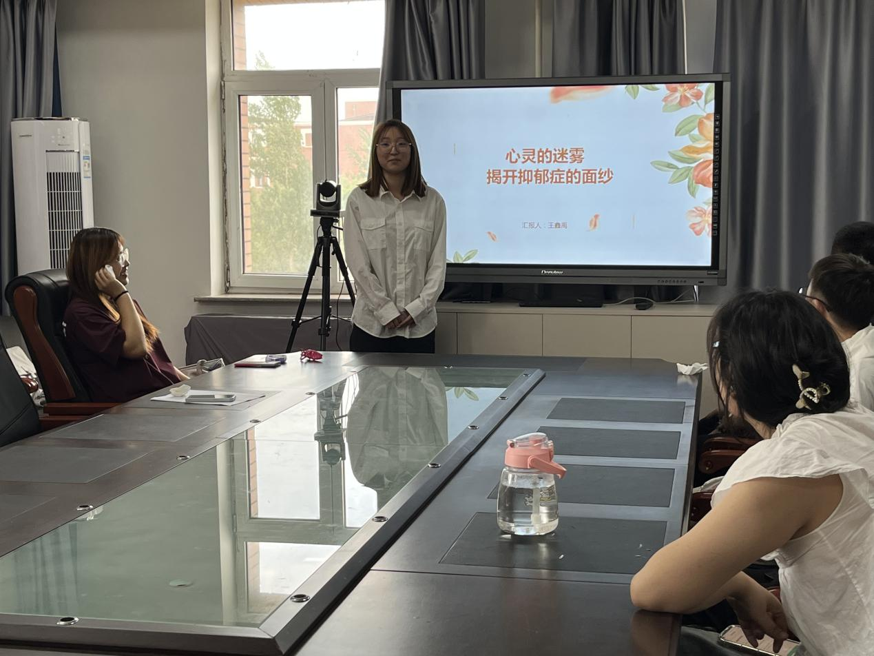 2023级社会发展与管理药学硕士研究生王鑫禹同学以《心灵的迷雾:揭开抑郁症的面纱》为主题汇报,从抑郁症的基本概念与现状、成因及影响因素、特点和治疗方法及预防措施等方面进行论述。着重指出抑郁症是一种精神障碍,早期发现和治疗可以有效减缓病情发展,同时强调家属支持是康复治疗的关键。通过对该内容的分享,不仅使同学们对抑郁症有更加深刻的认知,也让同学们更加关注自己和他人的心理健康状况,自觉宣传心理健康知识,创造更加友好的生活环境。