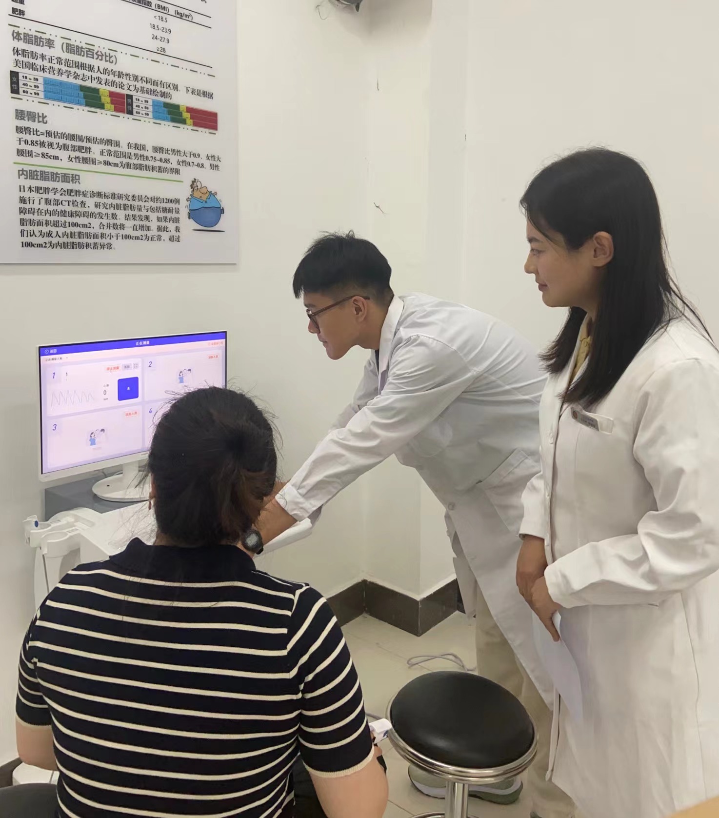 此次活动依托健康风险评估实训室,在格物楼负一层C008举行,现场设置了动脉粥样硬化监测、人体成分分析、心率变异分析、中医体质辨识等仪器检测区。永利集团yl6809官网教师王昕晔、王诗洋以及公共卫生硕士研究生等进行报告解读与健康指导。