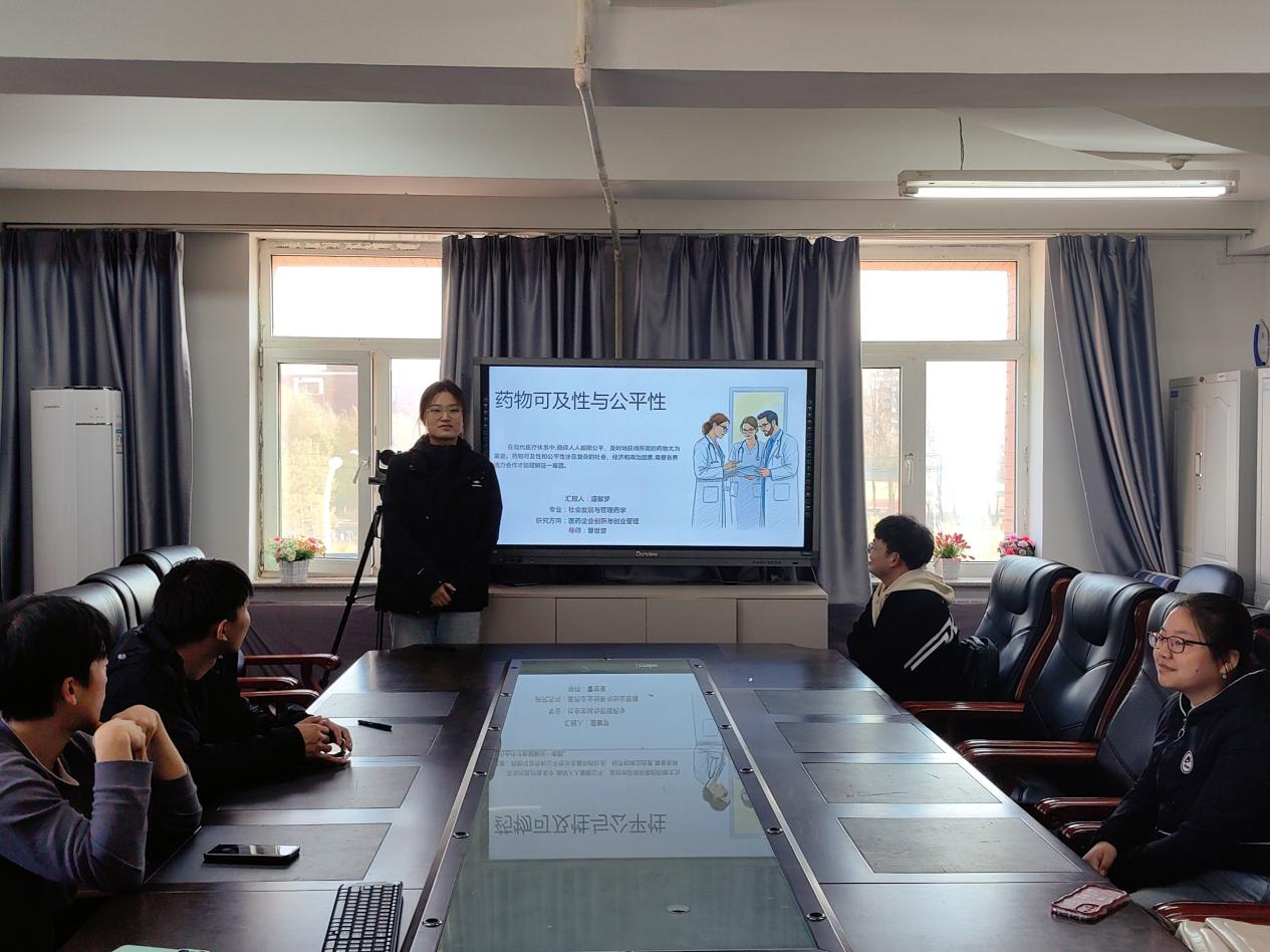 2023级社会发展与管理药学硕士研究生盛馨梦同学以《药物可及性与公平性》为主题汇报,药物可及性在全球医疗中至关重要,发展中国家面临更为严峻的挑战,高药价、资源匮乏以及基础设施薄弱等因素,严重制约其公平获取药物的途径。而技术的进步、政府对价格的管控以及医保的扩展举措,能够有力地提高药物可及性,进而共同促进医疗公平的达成。