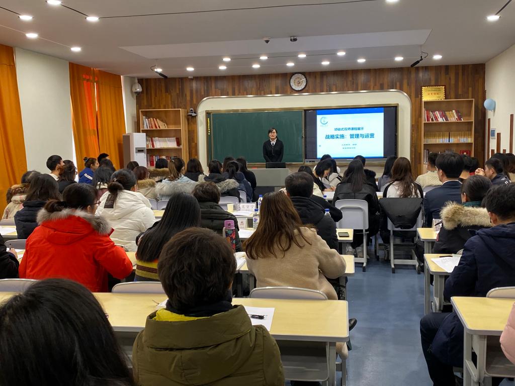 2019年12月19日,永利集团yl6809官网《战略管理》课程负责人谢铮老师,以项链式双师教学方式,开展了全校的教学改革公开课。公开课邀请到一汽资本控股有限公司人力管理中心张宝总经理,校督导组,高等教育研究中心、教学质量监控与评价中心主任,教务处副处长,各学院主管教学院长,以及全校教师50余人观摩了本次公开课。