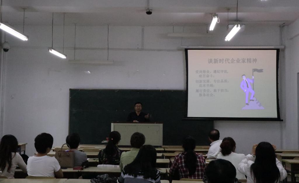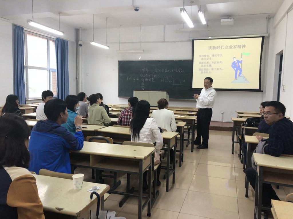 张野做了题为《新时代的企业家精神》的学术分享。他讲到,中央首次对企业家精神提出36字要求,即:爱岗敬业、遵纪守法、艰苦奋斗、创新发展、专注品质、追求卓越、履行责任、敢于担当、服务社会。他总结道,企业家精神的核心是创新精神,作为教师更应深刻领会、活跃思维、积极创新,为学生创新创业提供更多指导和鼓励。