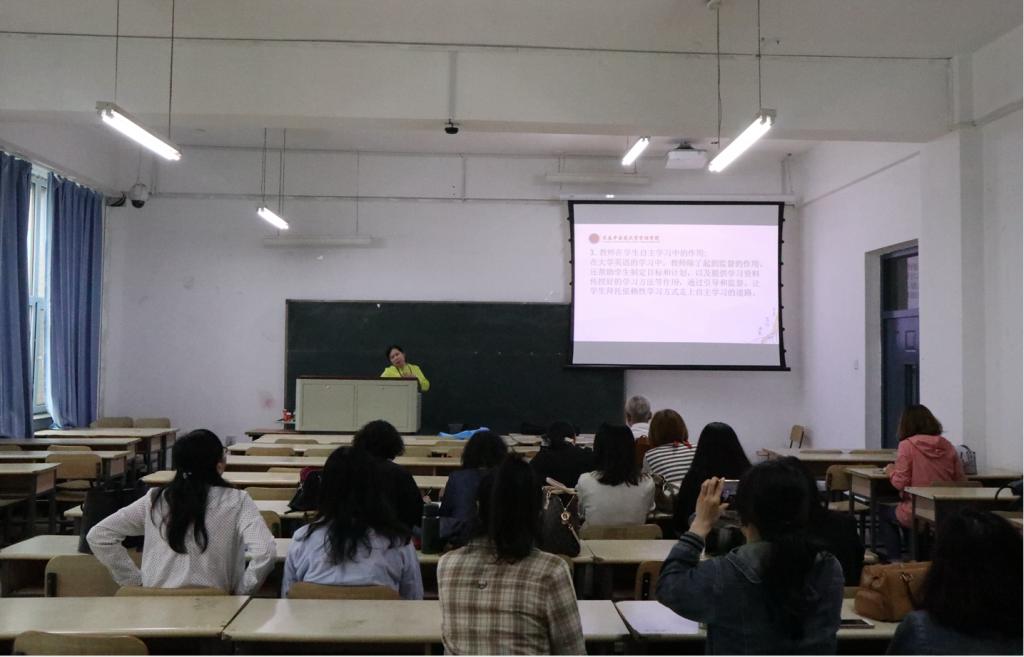 宋淑媛做了题为《建构主义理论指导下的大学英语自主学习》的学术分享。她讲到,自主学习的理论基础存在于建构主义心理学,根据大学英语自主学习的特点,以实现意义建构为目的,应通过构筑恰当的自主学习环境、形成良好的个人自主学习风格、建立完善的自主监控与评价体系、突出教师的帮助与指导地位等来实现。希望学生能够在教师的帮助和指导下,从被动学习转变为想学、会学、善学和坚持学,养成自主学习的习惯,提高自主学习能力,全面提高自身素质。