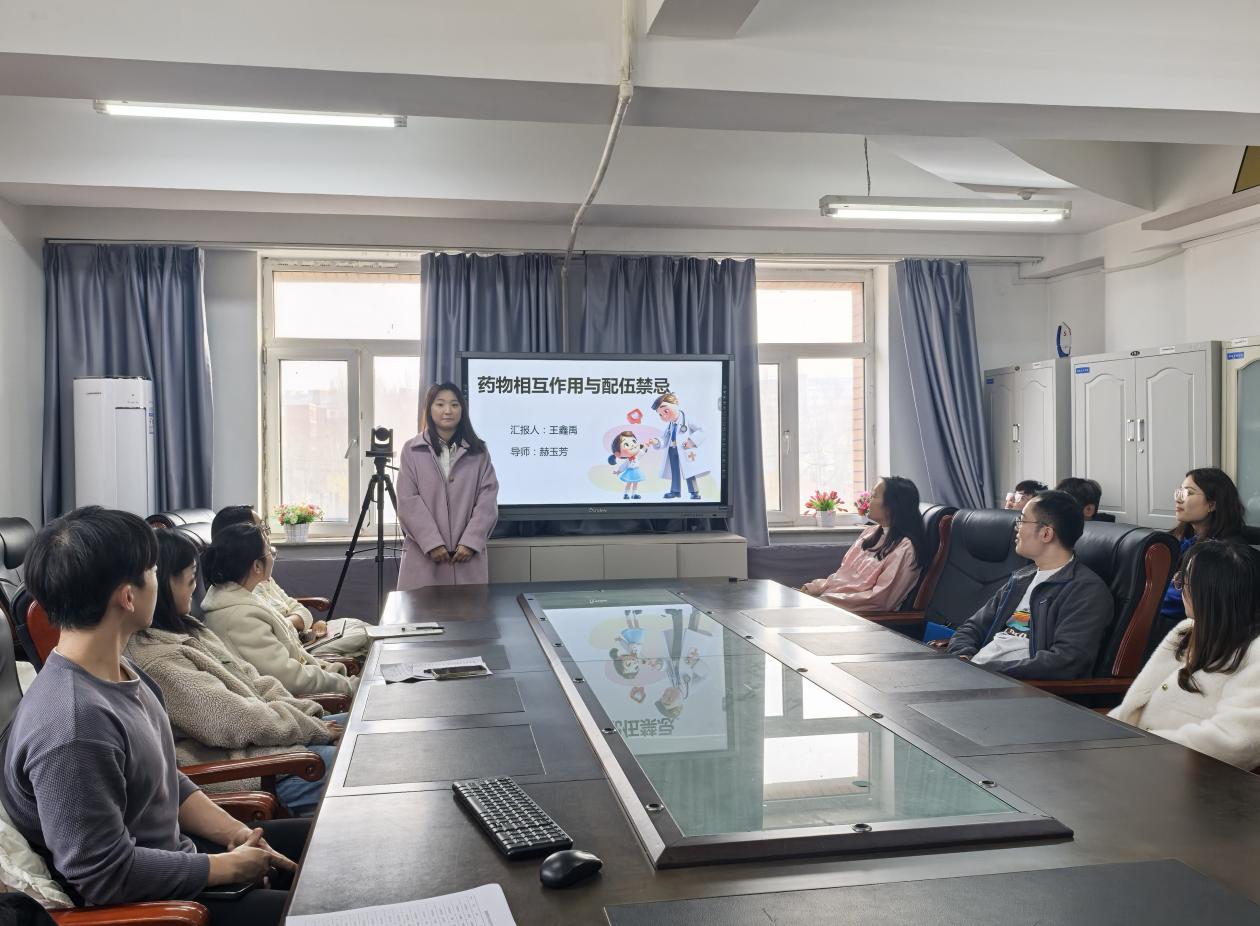 2023级社会发展与管理药学硕士研究生王鑫禹同学,以《药物相互作用与配伍禁忌》为主题汇报。她阐述药物相互作用定义,即两种或多种药物使用产生药效变化,以及分类,包括药动学、药效学、与食物和疾病相互作用,介绍常见药物相互作用类型,又阐述配伍禁忌定义、分类并举例,最后讲述生活中避免的方法,增强同学们对此的认知。