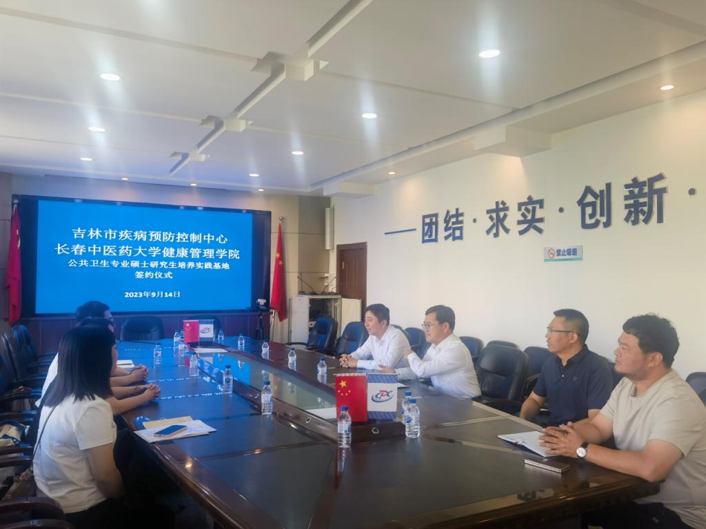 9月14日,永利集团yl6809官网副院长温红娟、科研行政秘书郝颜等一行2人,前往吉林医药学院公共卫生学院进行走访调研,并与吉林市疾病预防控制中心签署公共卫生专业硕士研究生培养实践基地协议。