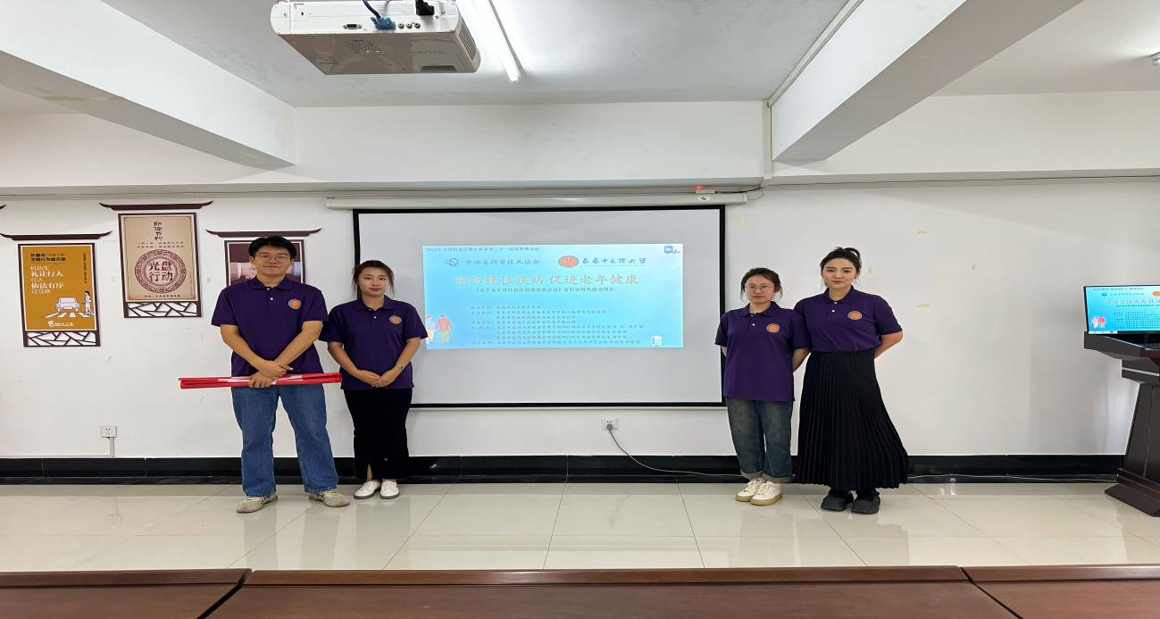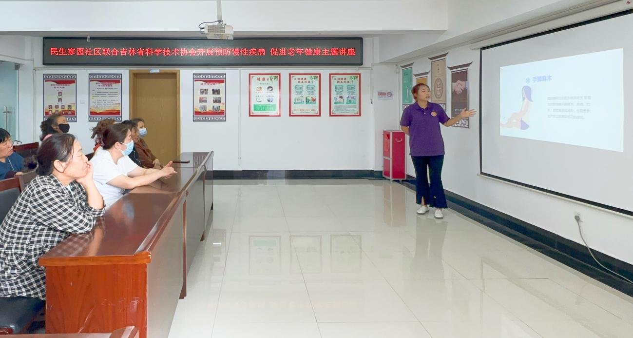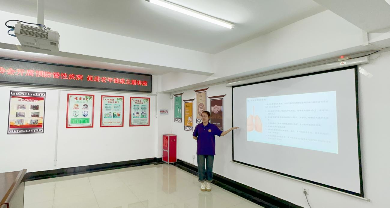 9月22日,永利集团yl6809官网永利集团yl6809官网心扬研究生科创团联合长春市宽城区欣园街道民生家园社区举办“预防慢性疾病、促进老年健康”科普讲座。在永利集团yl6809官网永利集团yl6809官网公共卫生专业导师王昕晔的指导下,由4名公共卫生专业硕士研究生分别以脑卒中、慢性支气管炎、动脉粥样硬化、糖尿病等4种老年常见慢性病为主题进行健康宣讲,帮助社区居民正确认识慢性病,从而提高应对慢性病的能力,尽可能避免或减轻慢性病发病风险。