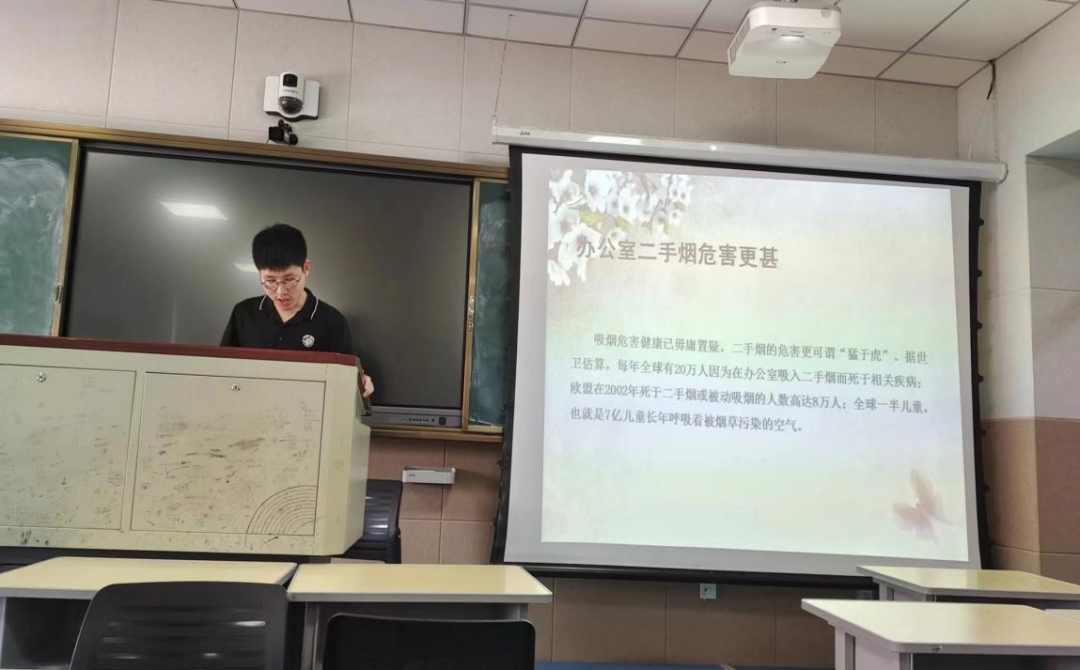 本次学术沙龙,由2021级公共卫生方向的两名研究生进行汇报分享。章健桉同学以《烟草危害》为主题汇报,通过介绍全球和我国吸烟的现状,指出吸烟已经成为人类的“二号杀手”,并根据相关数据分析吸烟对人类健康的危害,包括致癌、引发心脑血管疾病、猝死、视力衰退等。讲解烟草的危害,让同学们掌握避免复吸以及戒烟的有效方法,呼吁同学们远离烟草,同学们也积极响应并表达控烟的意愿和决心。