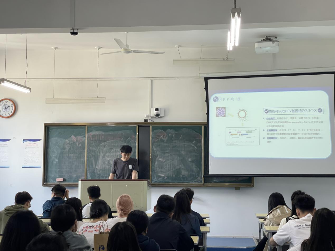 随后,2022级公共卫生专业硕士研究生万航以《hpv》为主题汇报,分别从hpv病毒和hpv疫苗两个方面进行讲解,通过对国内外hpv疫苗对比的分析,进一步对应该如何选择二价、四价和九价疫苗进行阐述,针对hpv接种年龄、接种时间以及预防效果展开描述。
