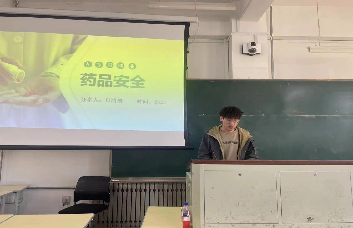 随后,2021级两名研究生进行汇报。社会发展与管理药学硕士研究生包鸿瑞以《药品安全》为主题汇报,从药品的认识与分类、药品的基本知识等两个方面展开讲解,带领大家熟悉家庭常备药品,并强调常见用药误区和安全用药须知,普及药品安全维权知识,让大家受益匪浅。
