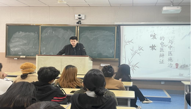 随后,2021级两名研究生进行汇报。社会发展与管理药学硕士研究生周国财以《咳嗽的中医辩证与中医施治》为主题汇报,从咳嗽的中医辩证、咳嗽的中医施治等两个方面进行详细的分析,对外感咳嗽和内伤咳嗽的症状、治法以及方剂进行讲解,让同学们对咳嗽有了更加深入、透彻的了解。