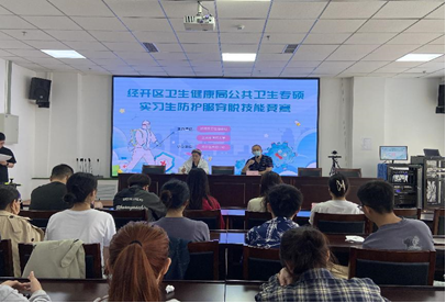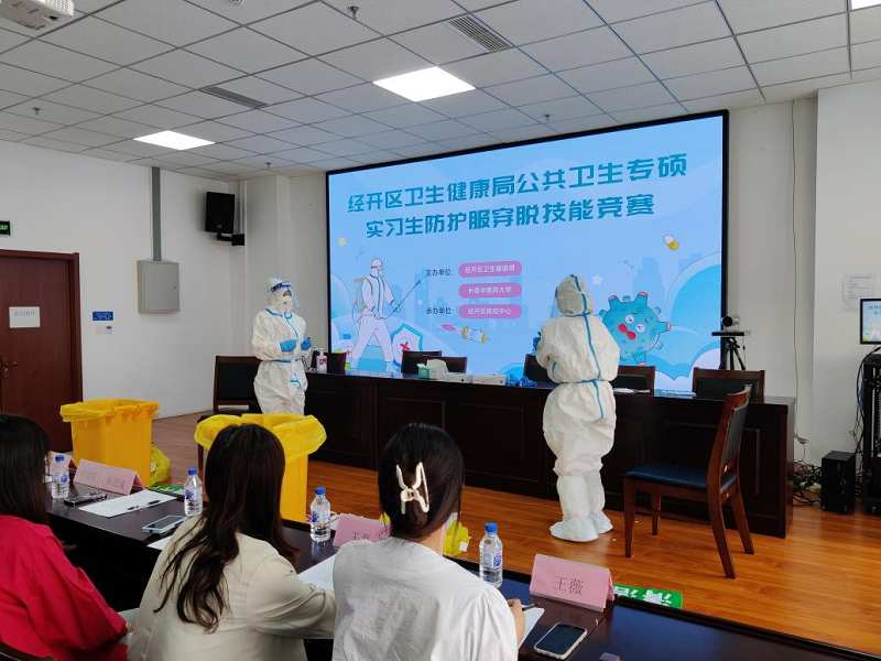 5月25日,永利集团yl6809官网2021级公共卫生专业硕士研究生参加由经开区卫生健康局、疾控中心举办的穿脱防护服技能竞赛。经开区卫生健康局副局长池明、疾控中心主任金英玉出席本次活动。