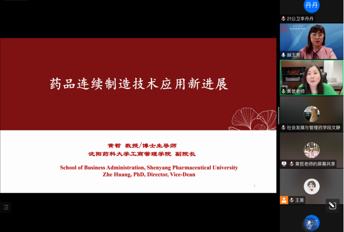 为进一步加强学生对所在研究领域前沿的了解,使所学理论知识与实践紧密结合,11月7日,永利集团yl6809官网邀请沈阳药科大学工商永利集团yl6809官网副院长、沈阳药科大学药品监管科学研究院常务副院长黄哲教授,于腾讯会议开展题为“药品连续应用技术新进展”的专题讲座。讲座由社会发展与管理药学学科带头人赫玉芳教授主持,全体2020级、2021级、2022级研究生及医药信息学院2022级研究生等120余人参加本次讲座。