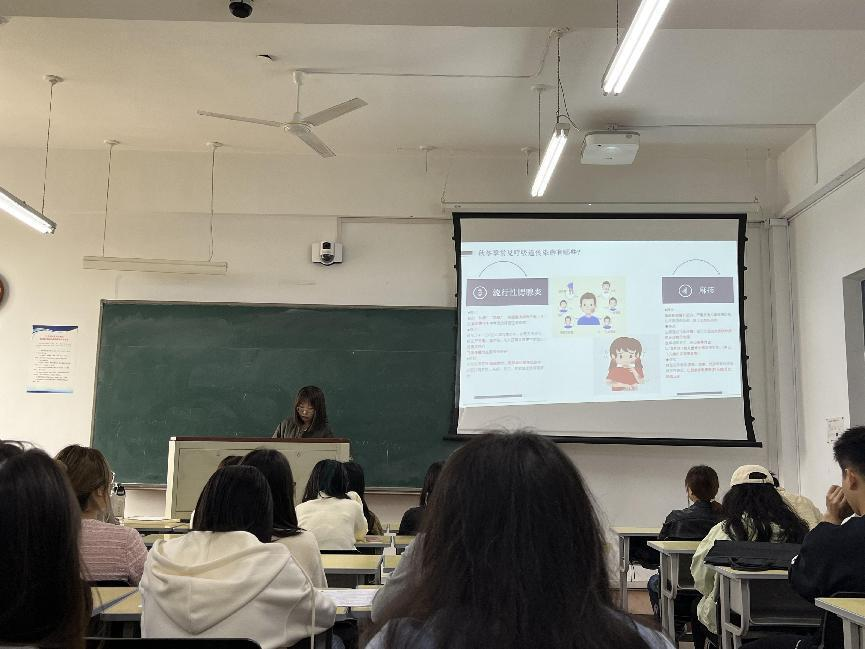 2022级社会发展与管理药学专业硕士研究生段文静以《呼吸道传染病》为主题汇报,由呼吸道传染病的定义引入呼吸道传染病在秋冬季高发的原因,同时阐述常见的呼吸道传染病及该病易感人群,并着重围绕近期多发的支原体肺炎感染展开讲解,最后从卫生防护、饮食、穿衣、起居、护嗓等五个方面引导同学们如何在秋冬季正确预防呼吸道感染。汇报主题紧跟近期热点事件,提醒同学们应时刻关注身体健康,做好科学防护。