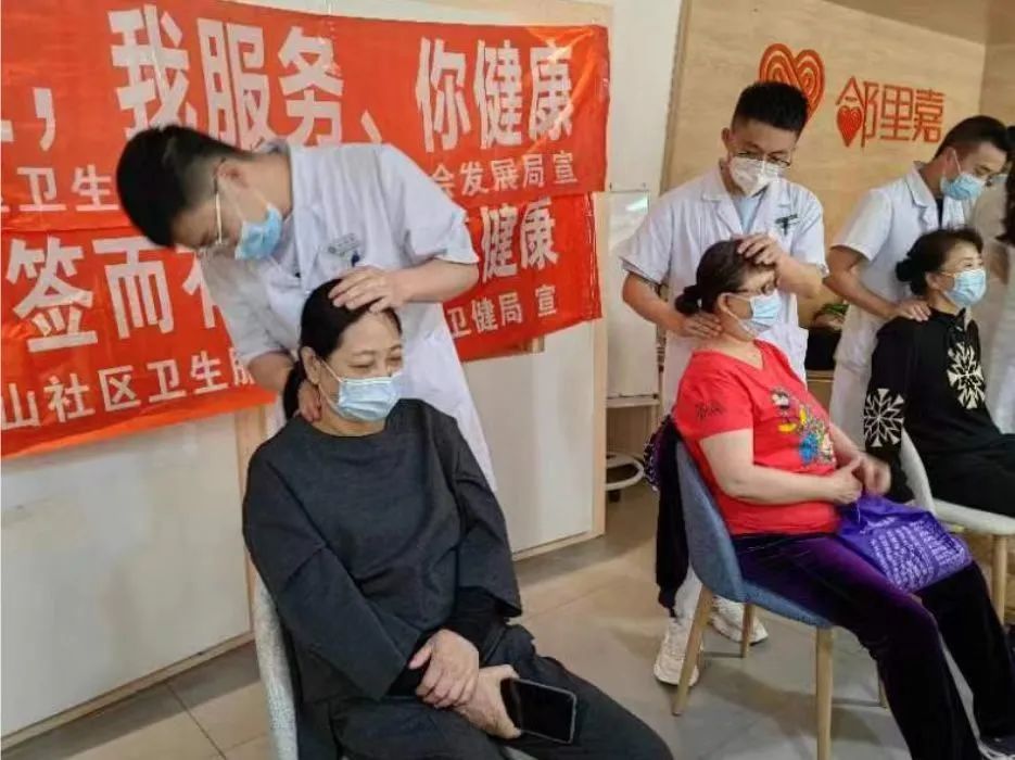 活动开始前,志愿者们提前到达了活动现场,布置场地,摆放义诊器材。待活动正式开始,志愿者们一边认真为居民诊脉、测血糖、测血压,一边为居民进行针灸、按摩、推拿,耐心回答居民提出的日常保健方面的问题,让居民们体验中医针推的魅力。志愿者们耐心周到的服务获得了居民们的不断称赞。