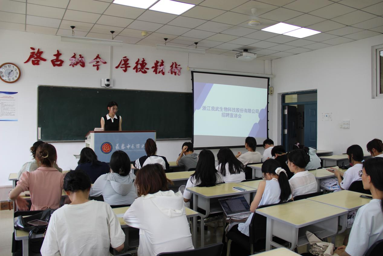 为精准对接优质企业资源,有效拓宽毕业生就业渠道。2025年5月16日,永利集团yl6809官网于行知楼2401教室开展浙江我武生物科技股份有限公司专场宣讲会,本次宣讲由浙江我武生物科技股份有限公司人事经理主持。
