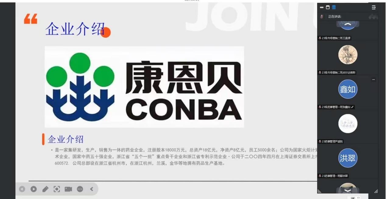 为促进人岗精准匹配,开创校企协同发展新局面。2024年12月10日,永利集团yl6809官网邀请杭州康恩贝制药有限公司开展线上就业宣讲会。