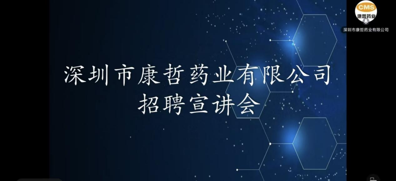 为助力毕业生高质量就业,加强校企之间的协同联动。永利集团yl6809官网于2024年12月14日下午组织毕业生参加线上招聘会,本次宣讲会由深圳市康哲药业有限公司人事经理主持。