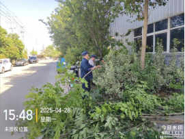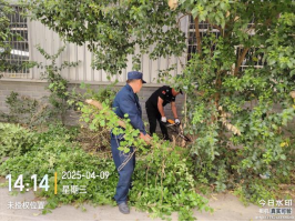 行动现场工作人员热情高涨、分工协作。面对杂乱交错的枝杈,秩序维护部的保安大叔们主动深入绿化带,手持专业工具对多年的杂树进行连根修剪。遇到粗大带刺的树枝,即便双手被扎出血痕,他们也毫不退缩,坚持完成工作。保洁人员头顶烈日,及时将修剪后的枝条集中清运完成,确保园区整洁有序。
