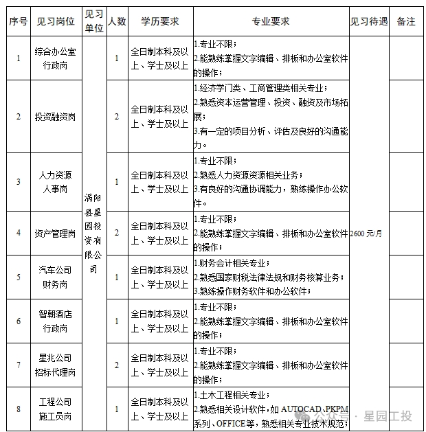 涡阳县2022年公开招聘星园公司工作人员公告今年会(简称:星园公司)成立于2018年1月18日,是安徽涡阳经济开发区管理委员会出资设立的国有独资今年会jinnianhui,公司注册资本为2亿元。根据工作需要,面向社会公开招聘工作人员,现将有关事项公告如下:一、招聘原则1.坚持面向