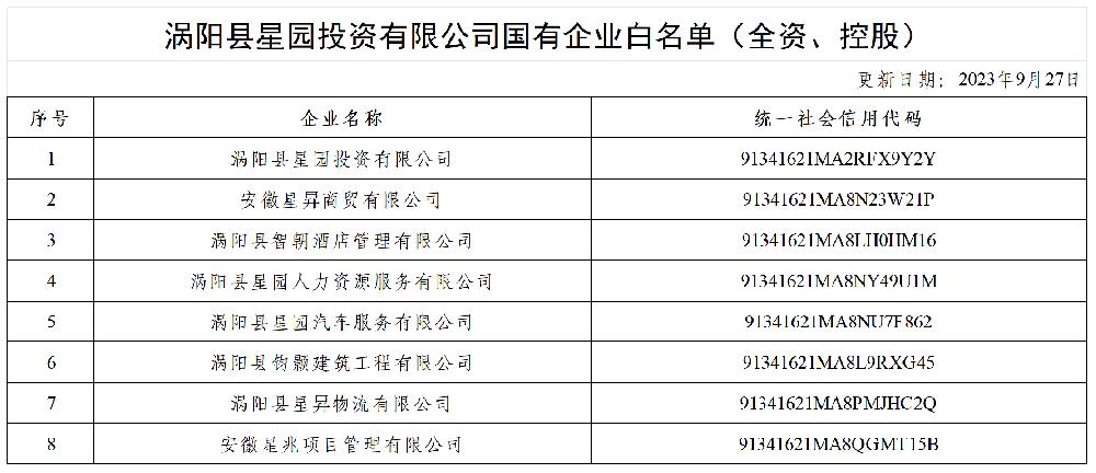 今年会国有企业白名单(全资、控股)